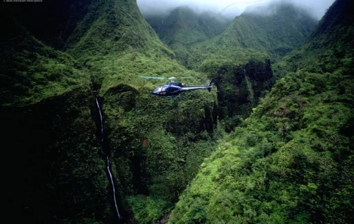 Your journey begins with a flight to spectacular Hanapepe Valley, then continues on to Mana Waiapuna, commonly referred to as "Jurassic Park Falls." Next it's up the Olokele Canyon before moving on to eye-popping Waimea Canyon, the famed "Grand Canyon of the Pacific" where you'll explore many hidden waterfalls. Then, the sculptural masterpiece of the Na Pali Coast gives way to the Bali Hai Cliffs, and the pristine blue waters of Hanalei Bay and the Princeville Resort area. Weather permitting, we'll visit Mt Waialeale, the heart of the ancient volcano. This is the wettest spot on earth, with an average rainfall of 450-500 inches annually! Flying into the center of the crater with its 5000-foot walls towering above and its 3000-foot waterfalls surrounding you.